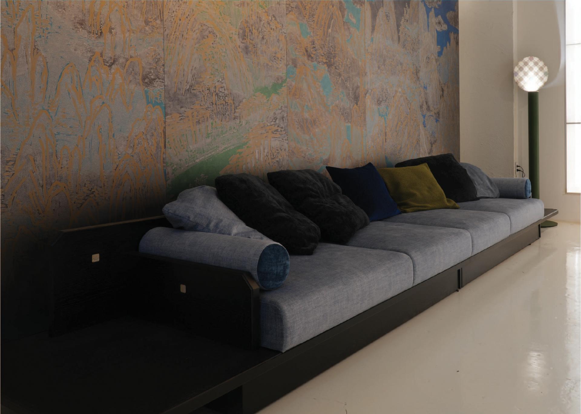 이 소파는 전통 가구의 평면성과 낮은 좌식 문화를 현대적으로 재해석한 디자인이다.