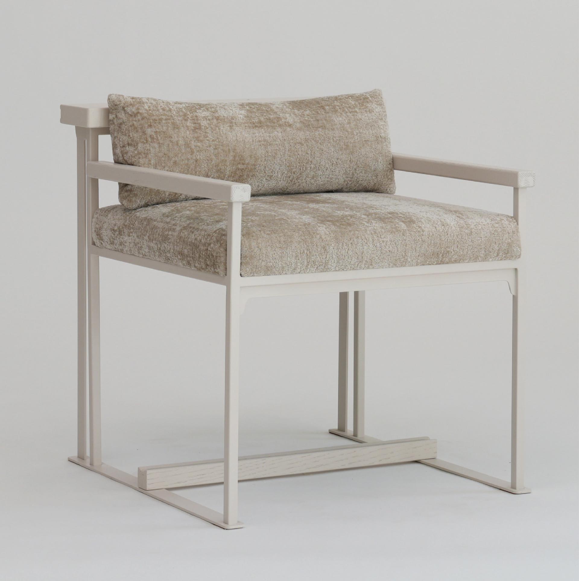 볼륨감 있는 시트와 낮은 등받이가 날렵한 금속 프레임과 대비되어 균형 잡힌 비례감을 형성한다.