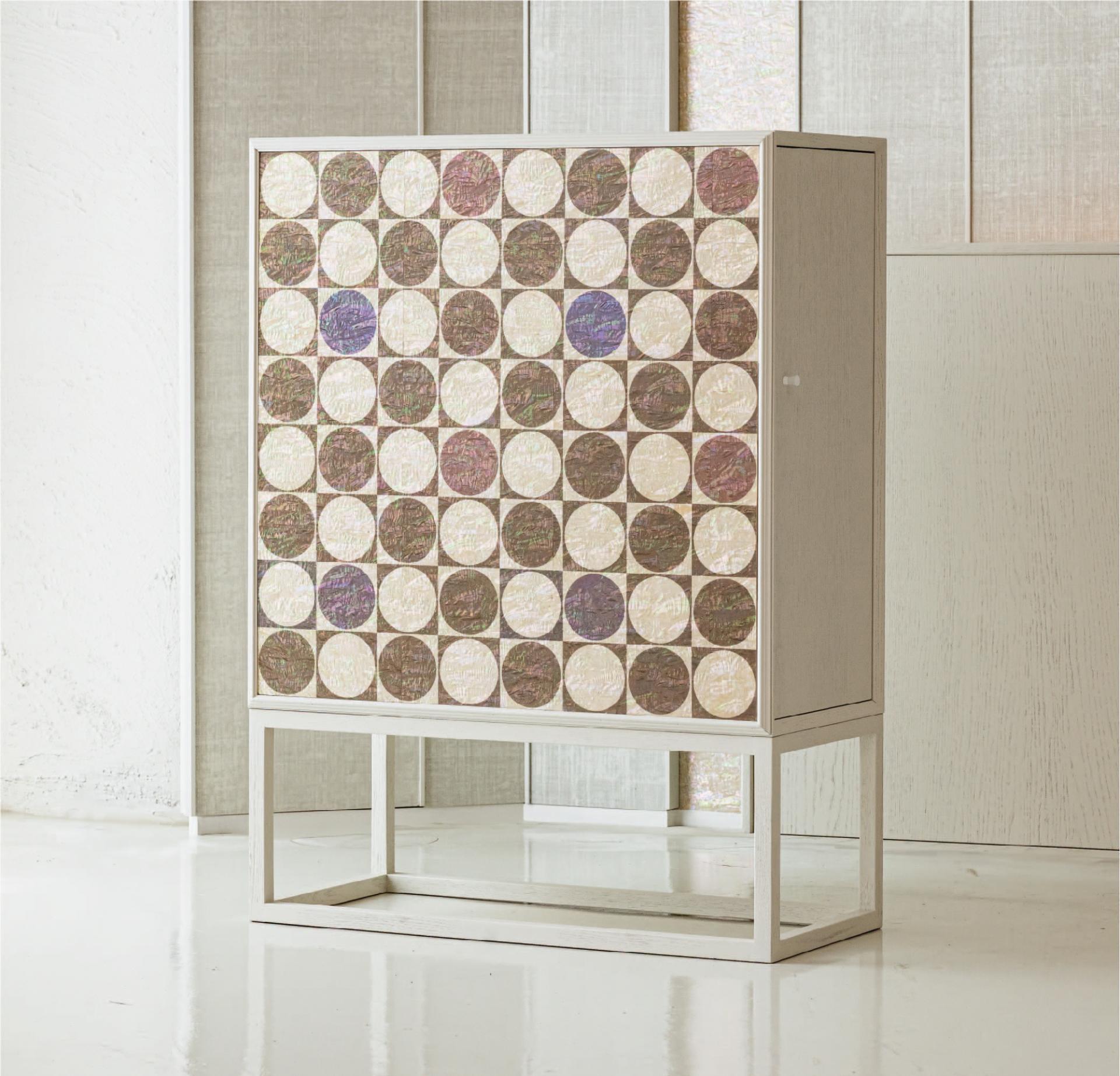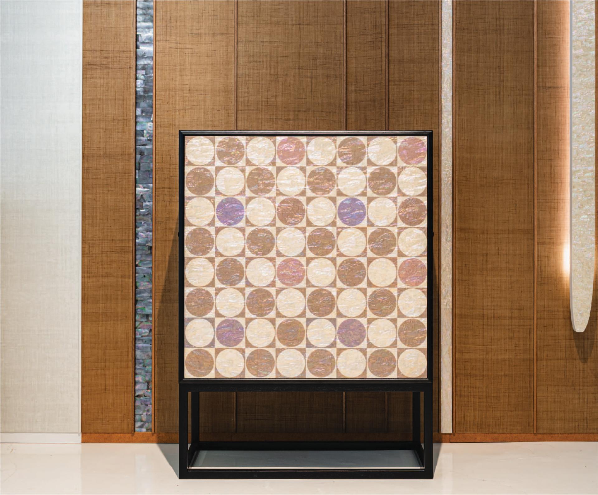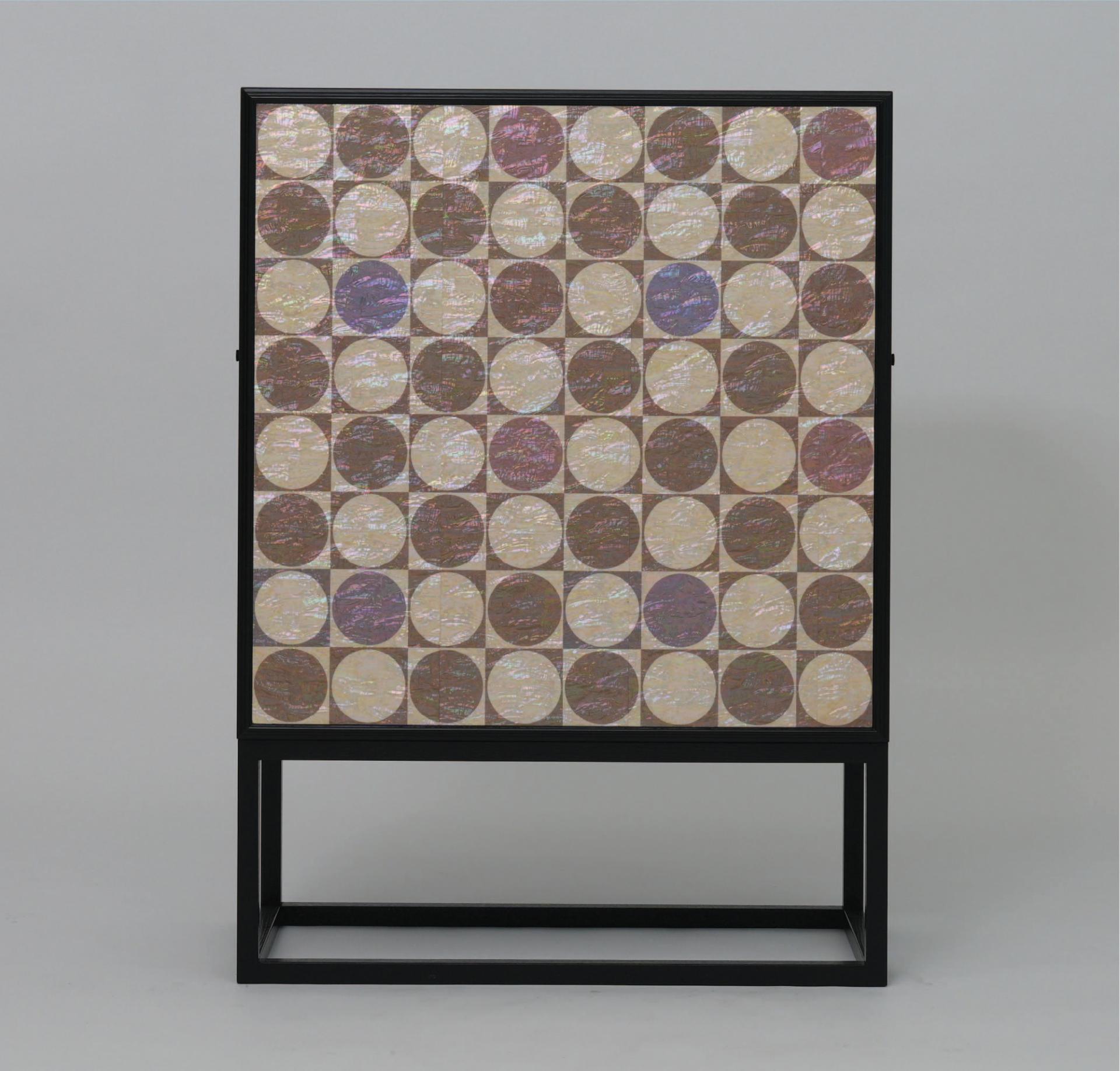 자개의 원형 패턴은 전통 문양의 질서를 현대적으로 재해석한 것으로,