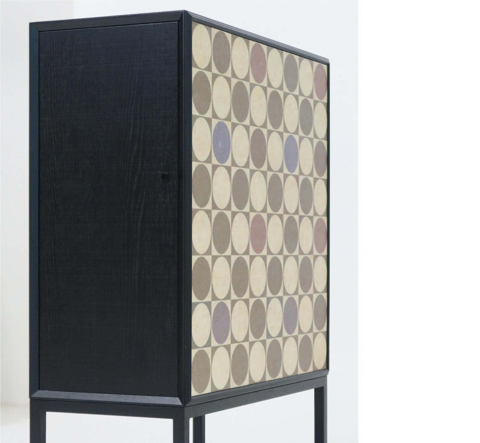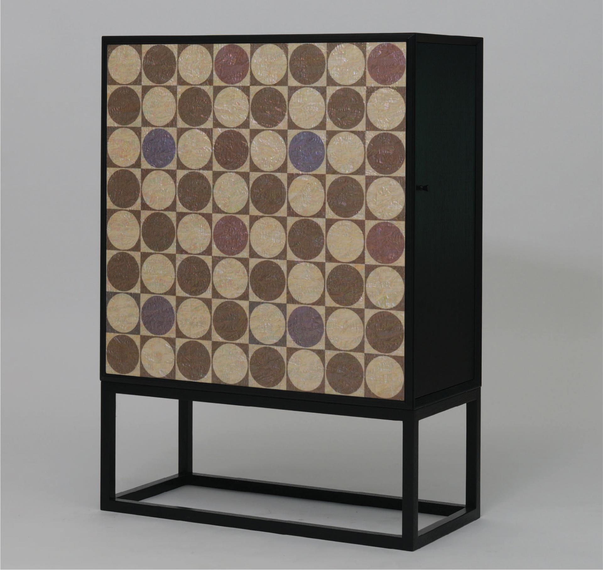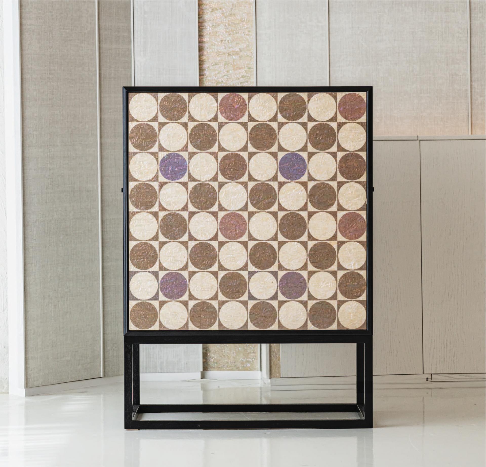 자개의 원형 패턴은 전통 문양의 질서를 현대적으로 재해석한 것으로,
