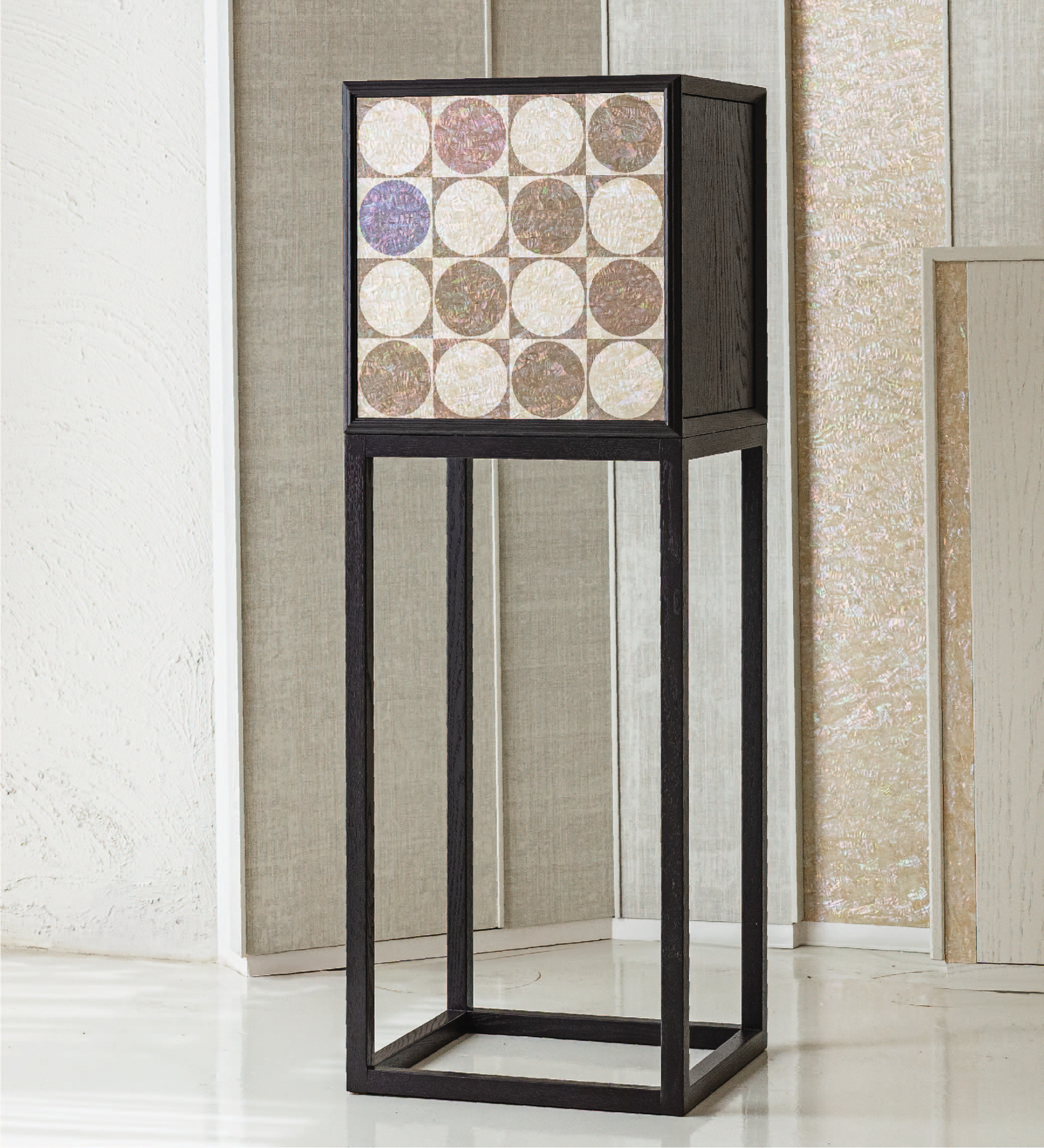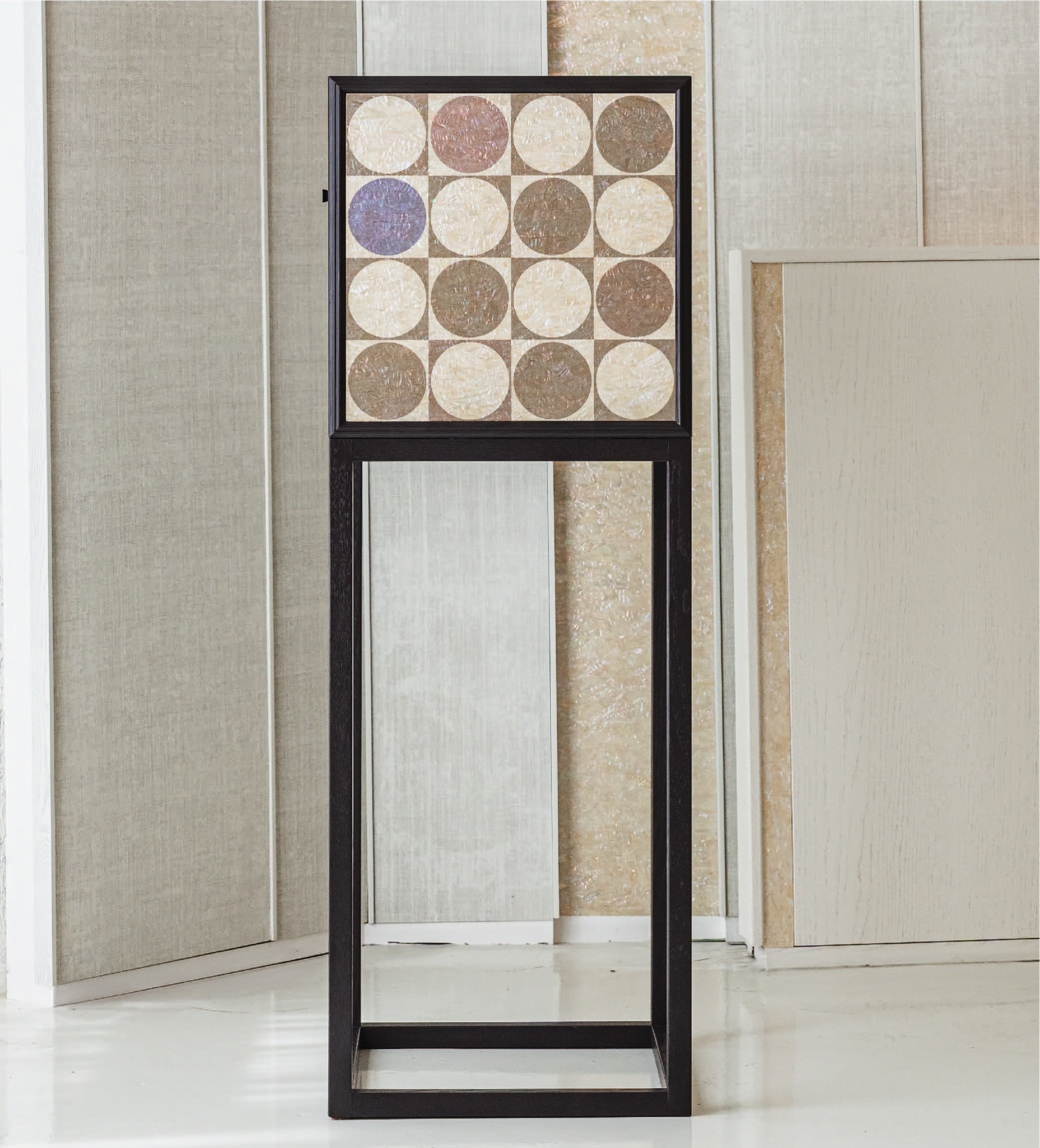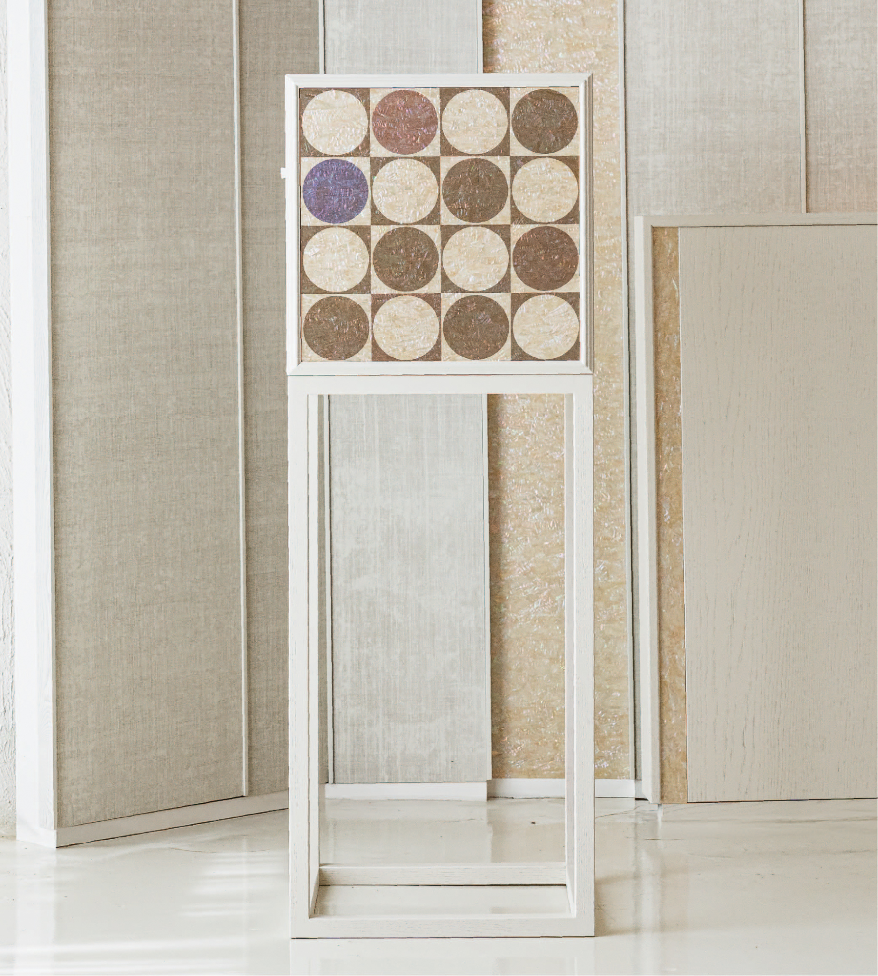 오크위에 유색도장, 자개 위 UV 프린트
