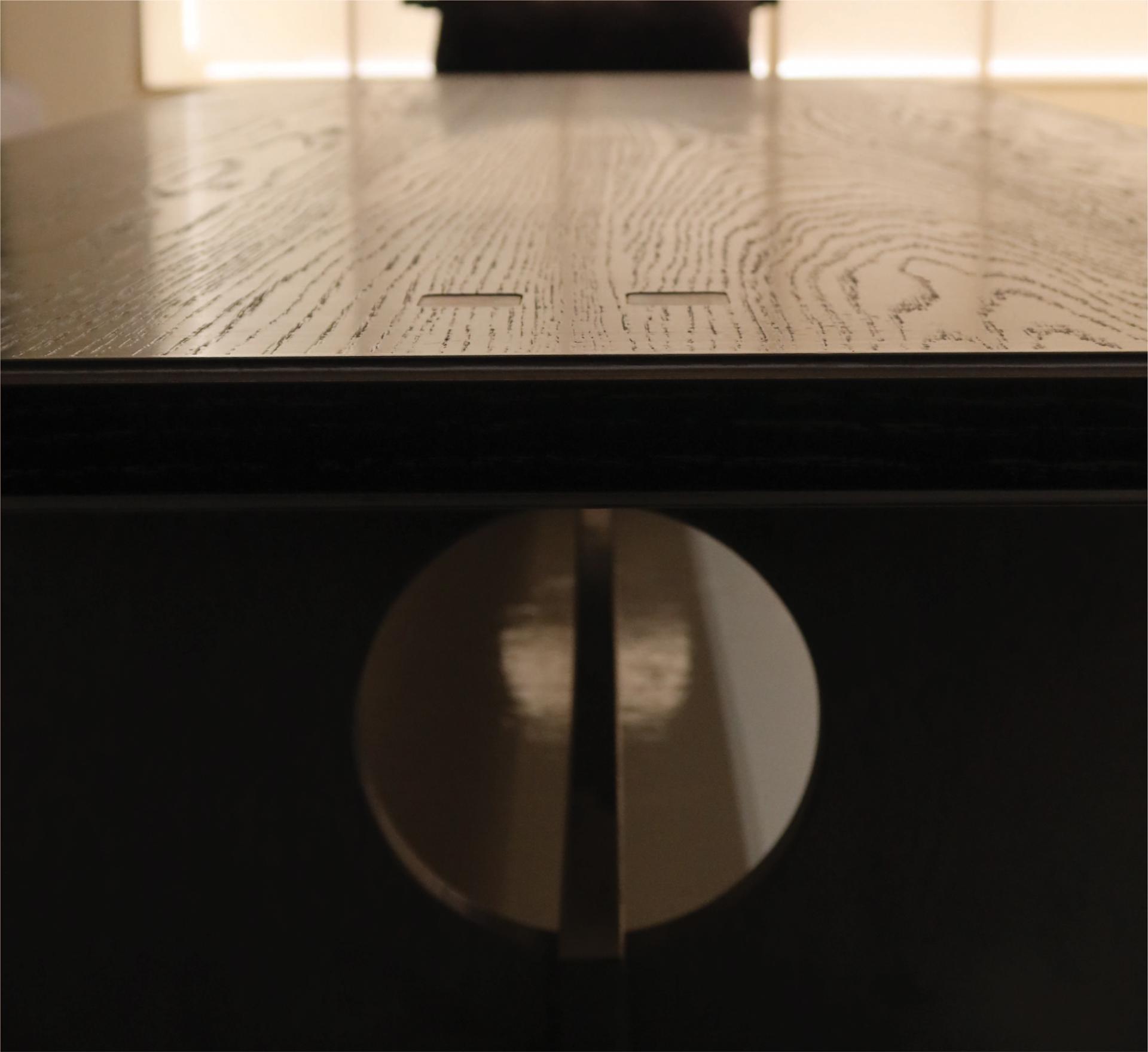 블랙 우드의 질감은 동양적 소재의 깊은 질감을 표현한다.
