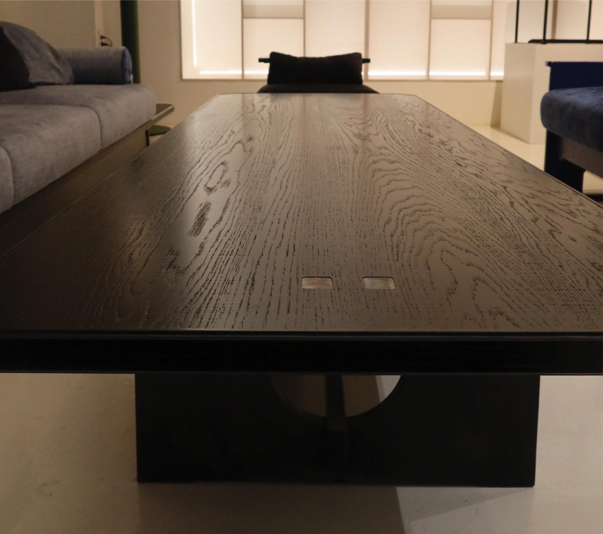 낮고 안정적인 프로포션과 직선적 구조는 차분한 질서를 만들고, 상판의 시그니쳐 자개 인레이는 오랜만의 전통성과 세련됨을 동시에 담아낸다.