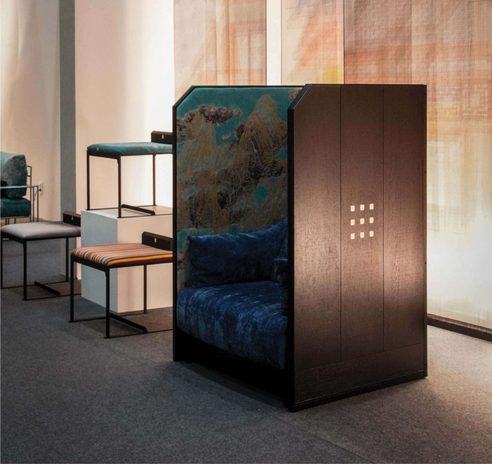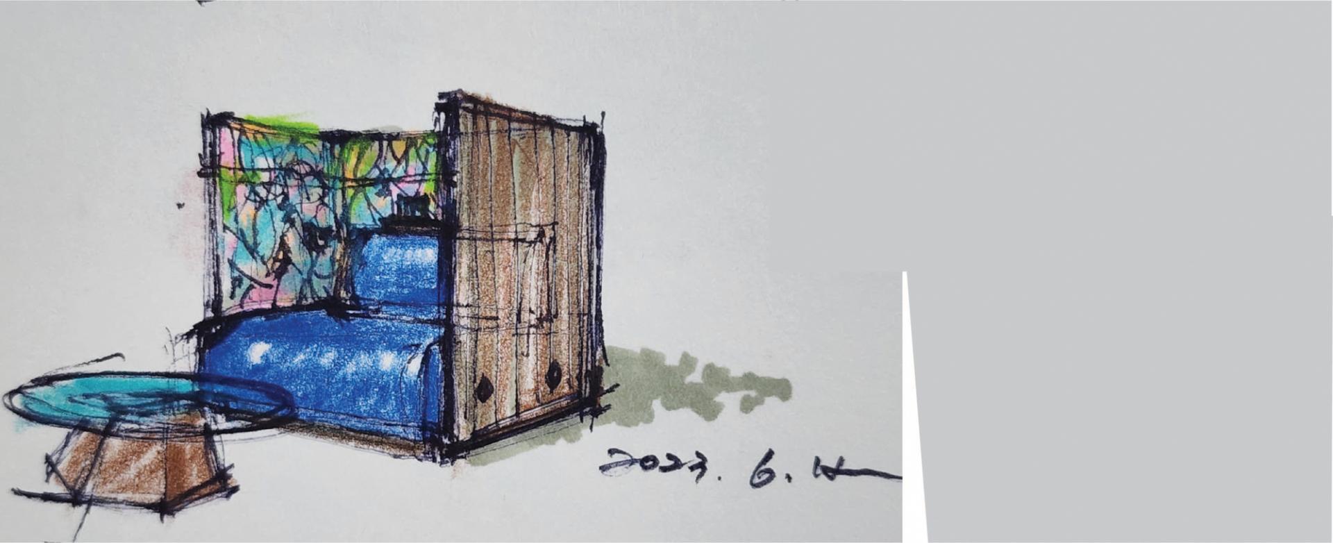 좌석을 감싸는 세 면의 패널은 단순한 가림막이 아니라 사용자의 공간적 경계를 설정하고 내면의 사유를 보호하는 의식의 벽(Chamber of Thought) 으로 작용한다.